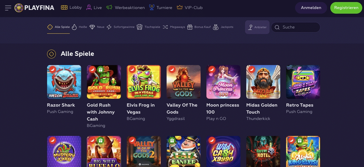 At Playfina Casino, players can experience a wide range of top-tier games that cater to every taste and preference. Whether you're a fan of classic slots, table games, or live dealer options, Playfina Casino has it all. With renowned game providers like NetEnt, Microgaming, Play'n GO, and more, you can trust that you'll have access to the latest and most popular titles in the industry.